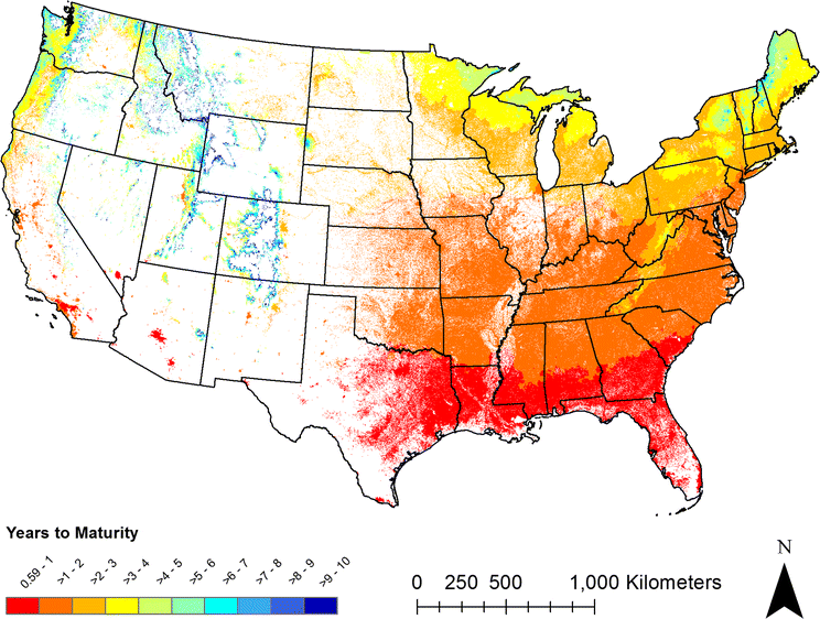 Mapping of the Asian longhorned beetle’s time to maturity and risk