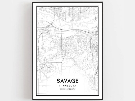 Savage Map Print, Savage Map Poster Wall Art, Mn City Map