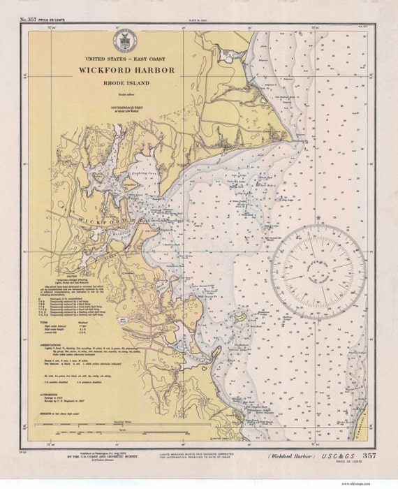 Wickford Harbor RI 1935 Nautical Map by the USCGS Reprint Harbors