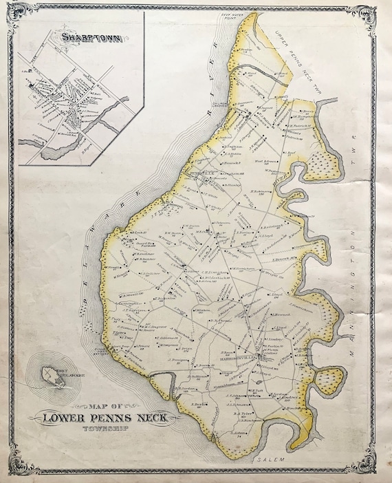 Pennsville Township Map, Original 1876 Salem County Atlas, Lower