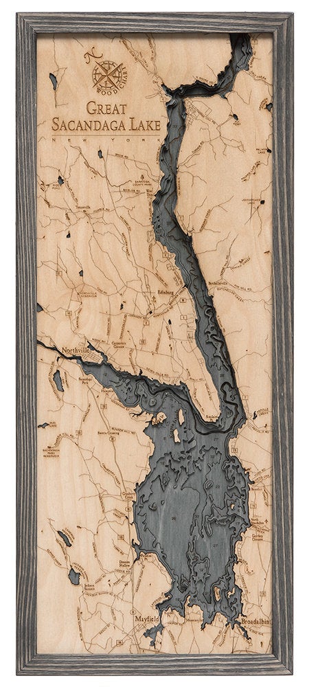 Great Sacandaga Lake 3 D Nautical Wood Chart, Medium, 13.5″ x 31
